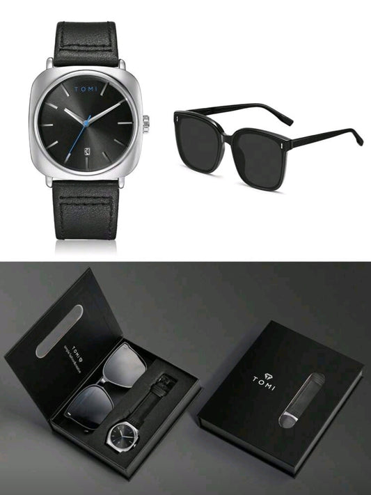Reloj Tomi Negro + Gafas De Sol + Estuche De Lujo