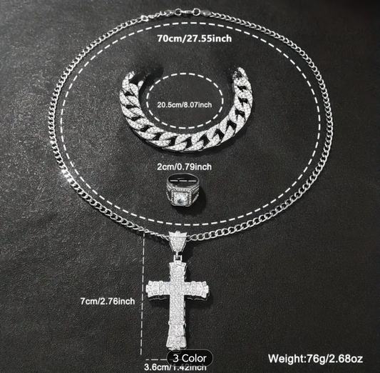 Reloj Cubano Plateado + Pulsera Cubana + Dije Cruz + Anillo GRATIS