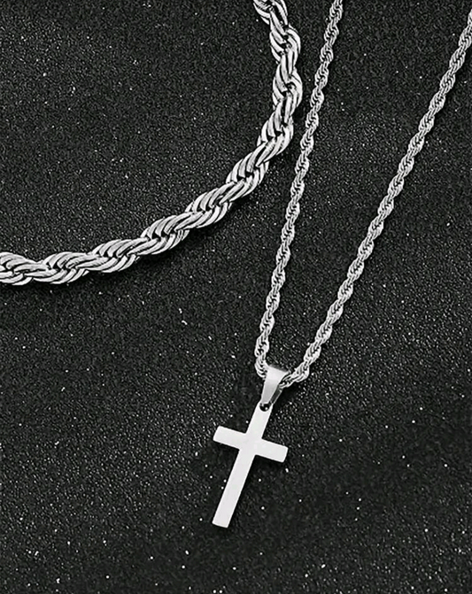 Cadena Trenzada + Pulsera + Dije Cruz Acero inoxidable