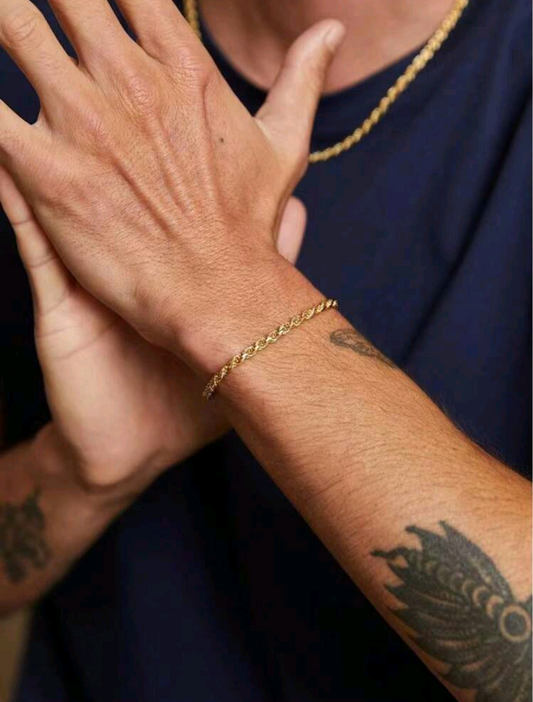 Set Cadena y Pulsera Trenzadas Doradas Acero inoxidable